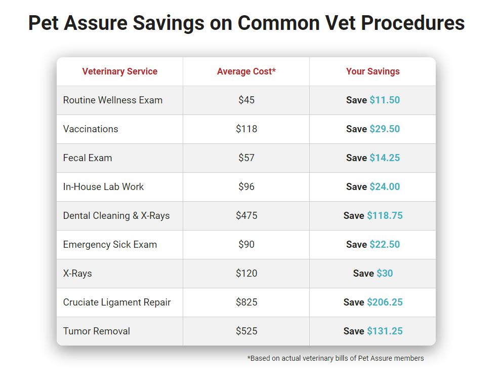 Pet Assure members get discounts on a lot of medical treatments for pets. This is beneficial if you know your pet has a medical condition, but also if your pet does not have a medical condition, because you are always guaranteed a discount for accidents or just wellness visits!